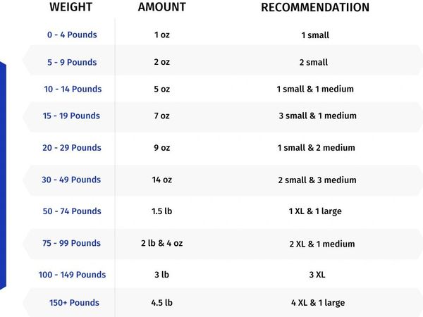 It's recommended that active adult dogs 2.5 - 9 years of age should eat approximately 2-3% of their overall weight (calculations based on 3% of overall weight).